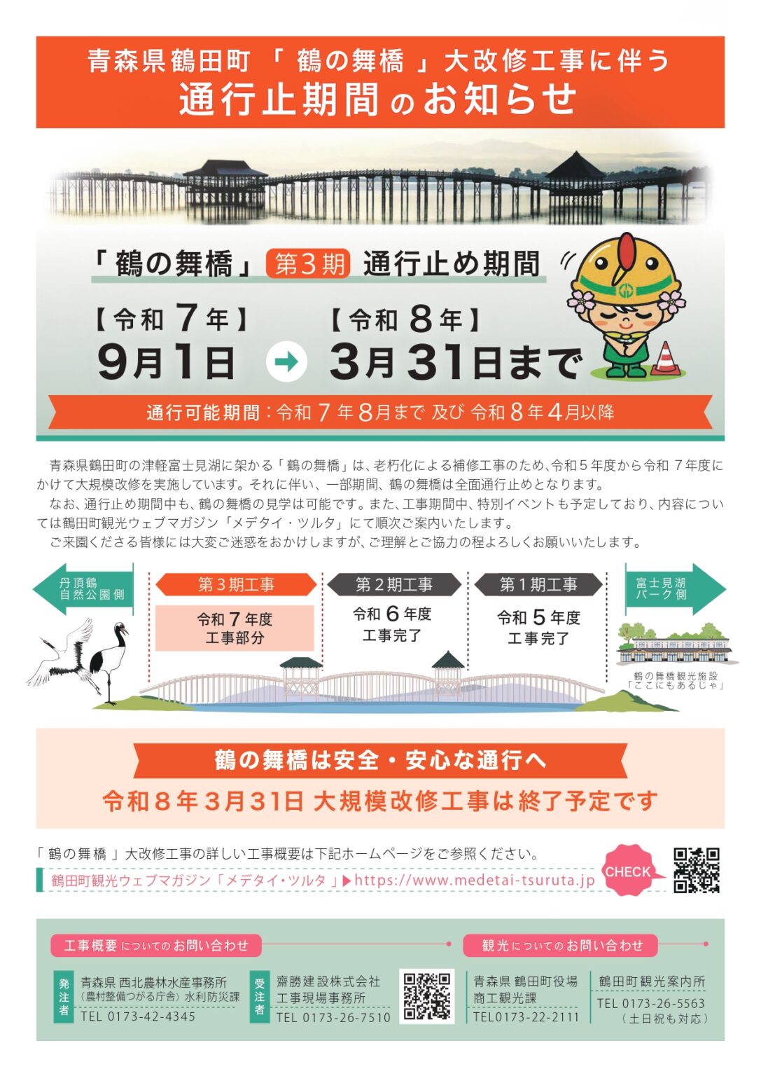 【鶴田町】「鶴の舞橋」改修工事による通行止めのお知らせ