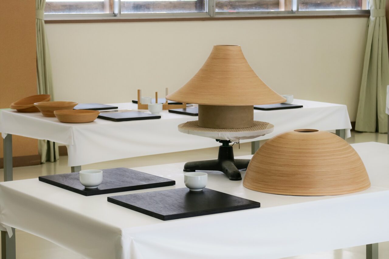 世界遺産・白神産地の玄関口西目屋村にある小学校の空き校舎を活用したブナコ西目屋工場で、思い思いのブナコ作りに挑戦できます。