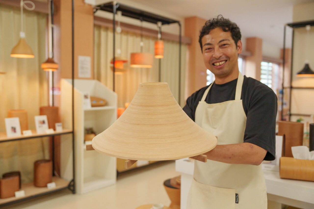 日本一の蓄積量を誇る青森県のブナの木を有効利用するために考案された、独自のユニークな製法で、ひとつひとつ丁寧に手作りされている木工品です。