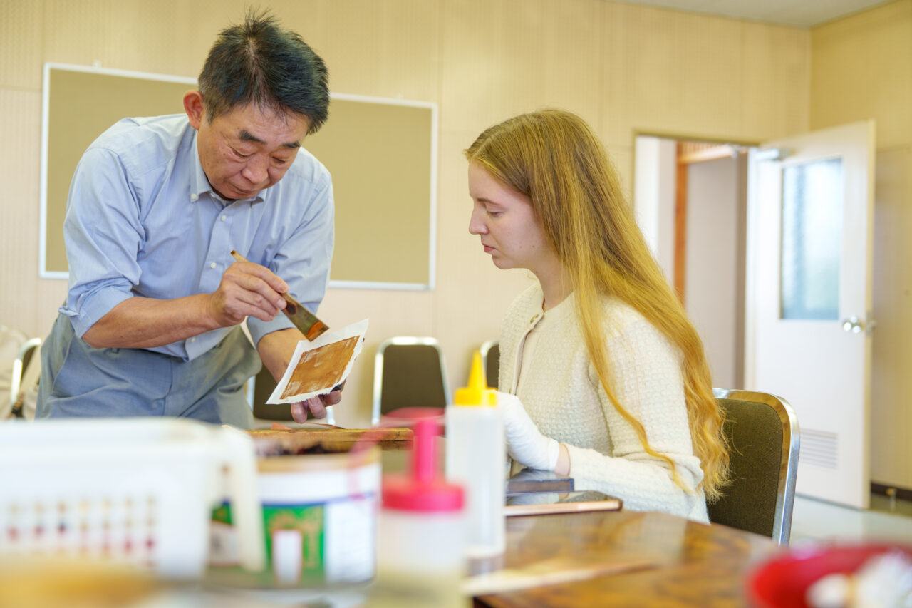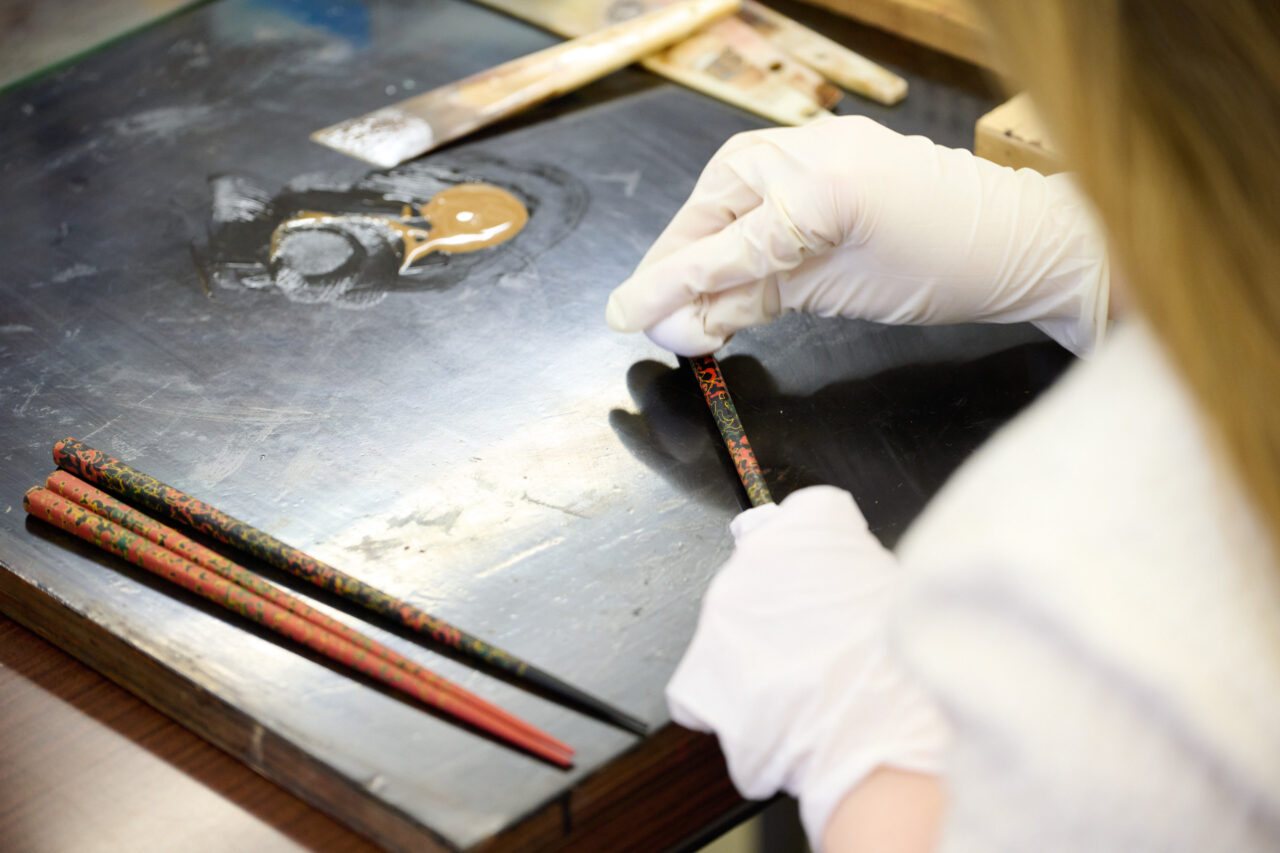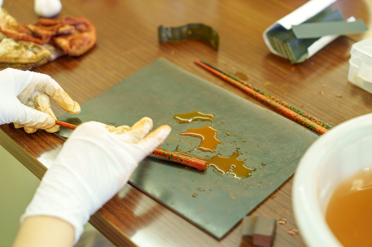 津軽塗の歴史/特徴を学びながら、津軽塗職人と一緒に津軽塗箸もしくは盛皿の製作をお楽しみいただけます。