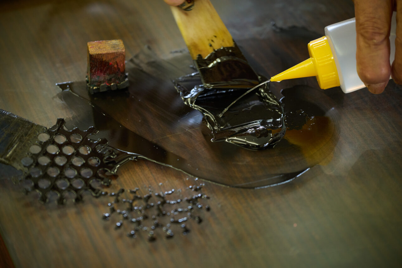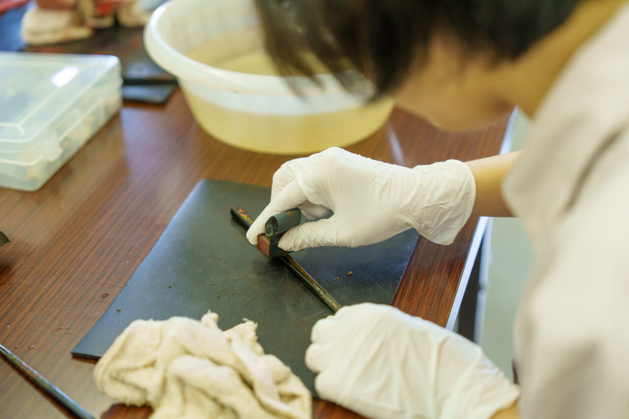 ④盛皿の研ぎ出し体験と仕上げ研ぎ・炭はぎ