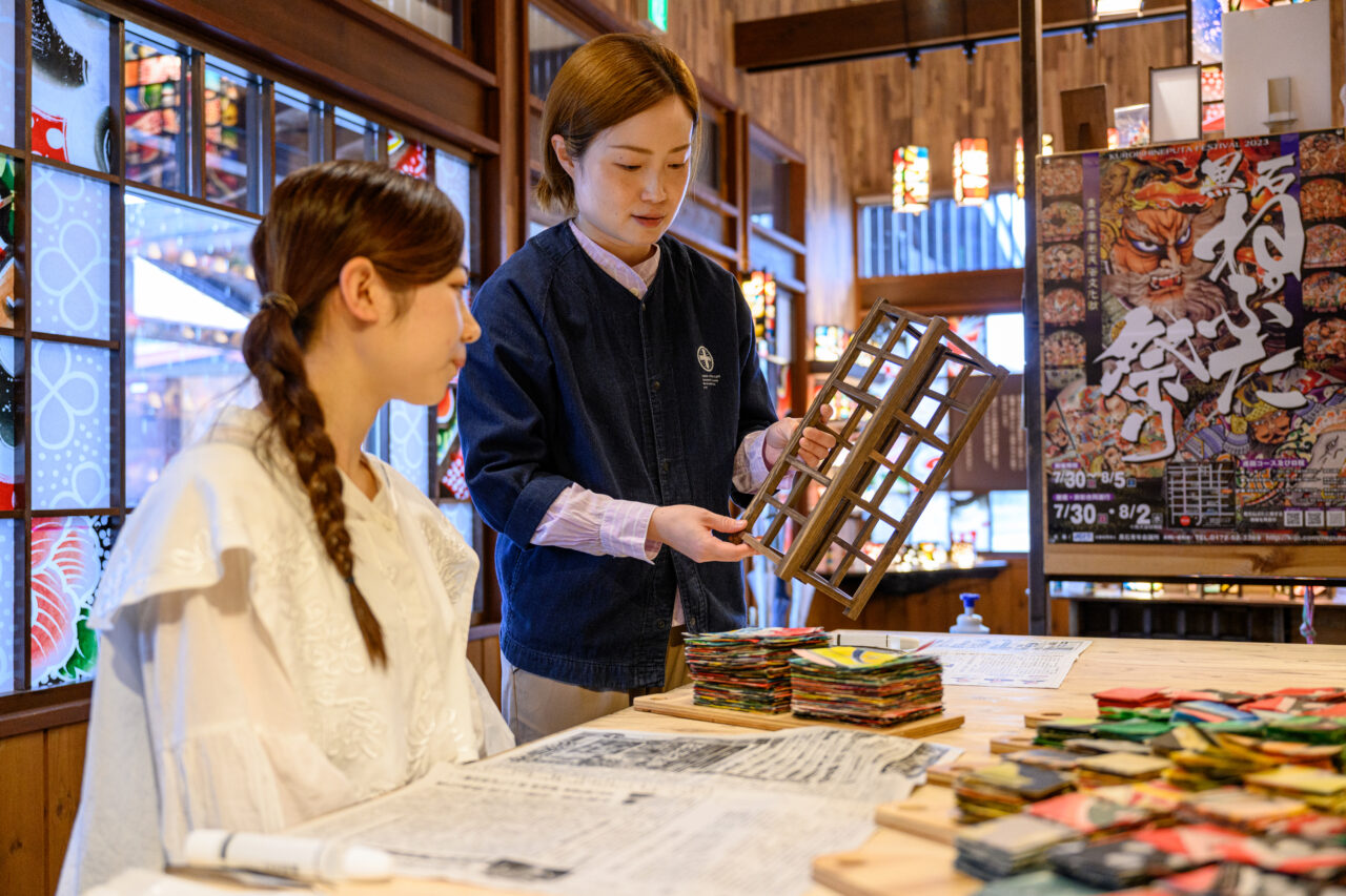 夏に開催される黒石ねぷたまつりで実際に運行されたねぷた絵を再利用して世界に一つだけのうちわや灯ろうの制作体験ができます。