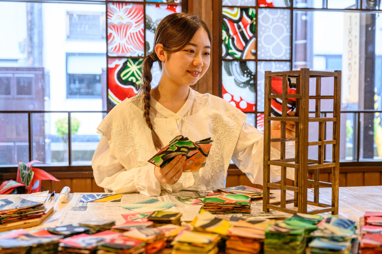 色とりどりのねぷた絵から、自分好みの絵を選んでオリジナル灯ろうの制作体験ができます。